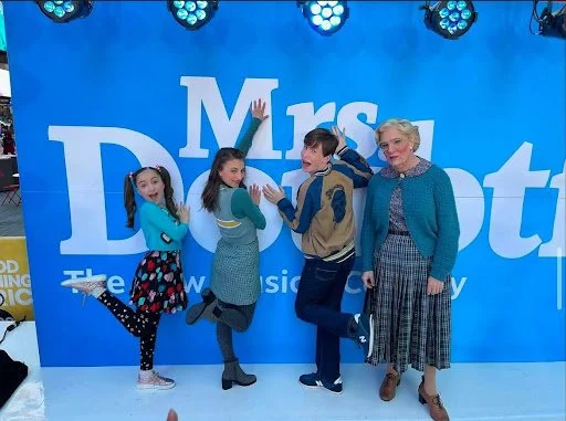 From left to right: Avery Sell as Natalie Hillard, Analise Scarpaci as Lydia Hillard, Jake Ryan Flynn as Christopher Hillard, and Rob McClure as Mrs. Doubtfire on Good Morning America (2021).(Courtesy: Analise Scarpaci)